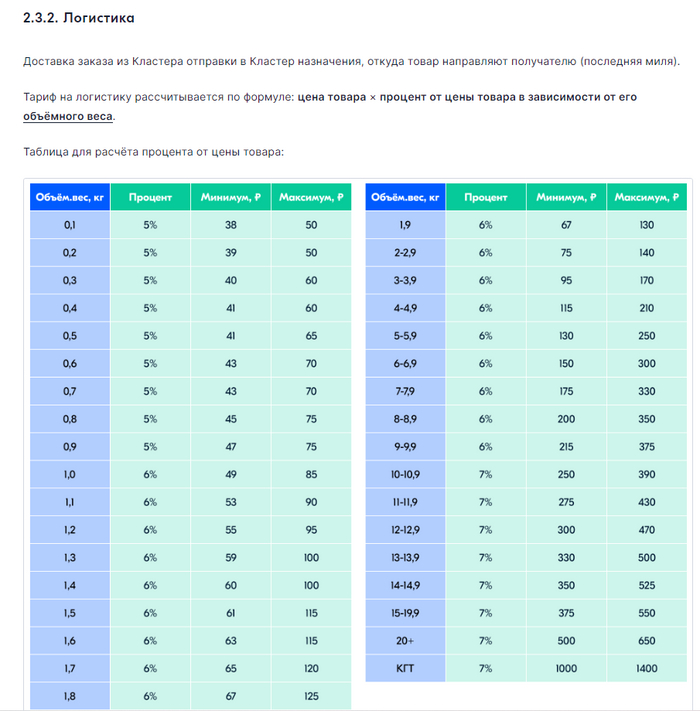 3) Вторая часть доставки, последняя миля. Просто 5% от стоимости, но не менее 20 рублей.