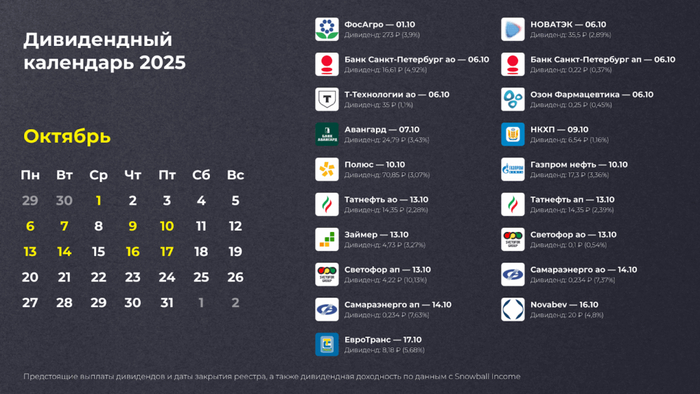 Дивидендный календарь на октябрь. Почти по-взрослому