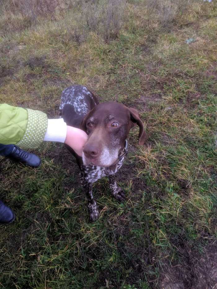Здравствуйте. Пропала девочка 9 мес Курцхаар кличка Deniz. На ней был ошейник кожаный оранжевый с синей капсулой. Район немецкой деревни, улица Поливная. Хвост короткий, есть шрам от пореза на правой задней лапе, между перепонками. Она не охотник, боится салютов, ужасно болтлива, добрая и отзывчивая.