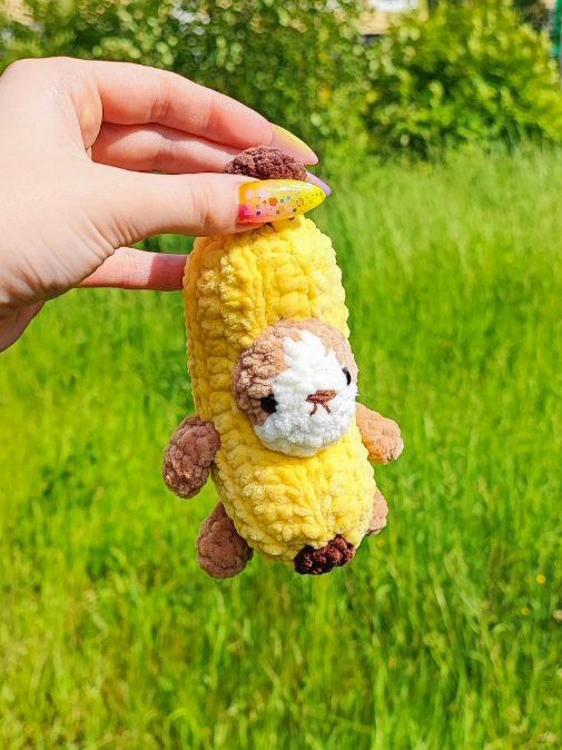 Этот мем с котиком внутри банана появился еще больше полугода назад в виде только картинок (котик был внутри не только банана, но и внутри других фруктов и овощей), уже тогда я захотела сделать такую игрушку. Но вот банана кэт завирусился в тик токе, с ним стали делать видео, сделали даже плачущего котика :'с