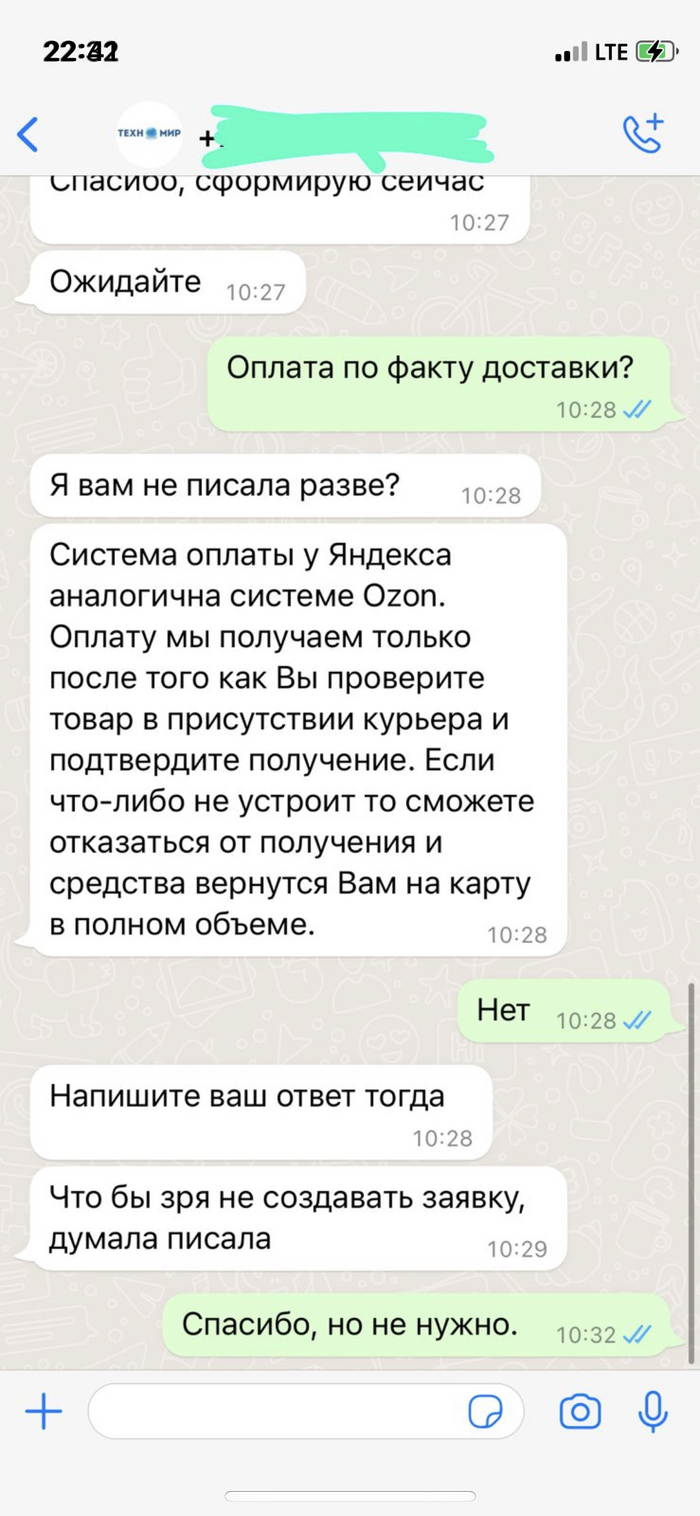 Практически сразу мне на ватсап пришло сообщение от «продавца» что он приносит свои извинения и готов доставить товар из другого города за свой счёт