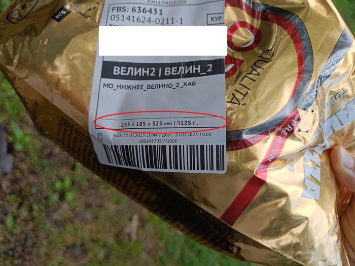 На этой упаковке кофе был наклеен озоновский стикер, где написаны размеры большие, чем упаковка кофе и вес 5 кг. Неужели курьер этого не видел? Или на складе? На каком этапе исчезло 4 пачки кофе? Озон!!! Будете искать, кто их испарил????