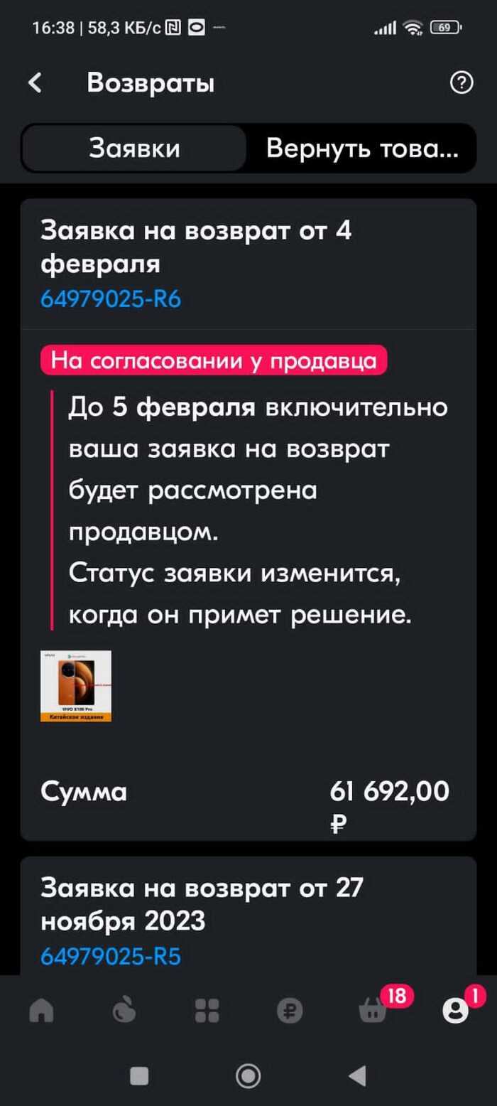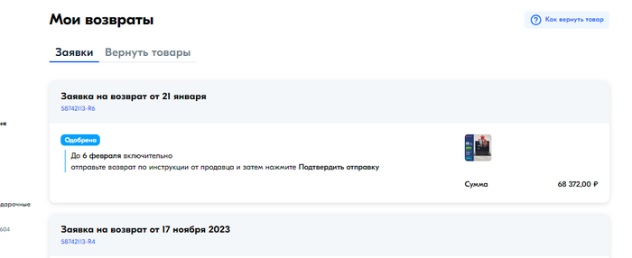 UPD от 30.01.2024 Продавец одобрил заявку на возврат (ну или она автоматически была одобрена системой, потому что истек срок рассмотрения продавцом).