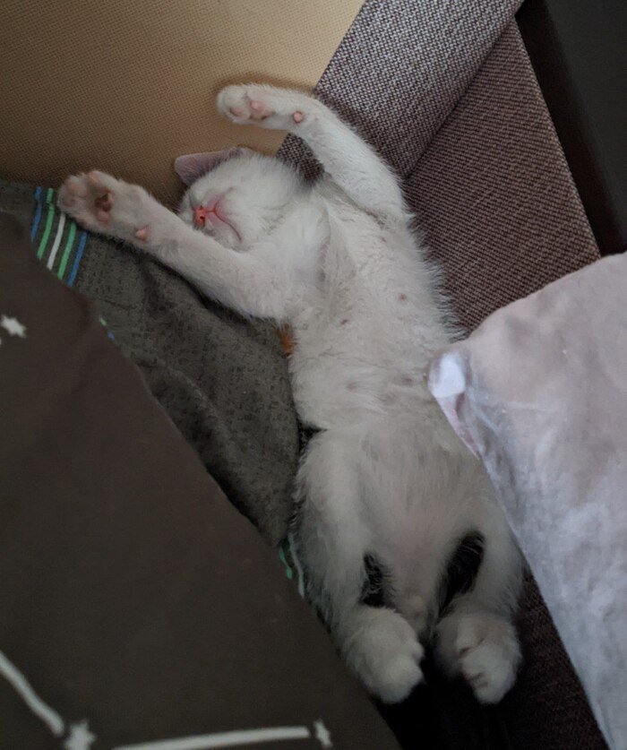 Баг устал вылизывать усы от молока и заснул прямо в процессе, на переднем пассажирском.