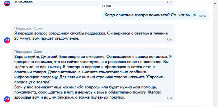 Озон опять заводит песню "пишите сами продавцу". Какой же цирк! Напоминаю снова 25 мая.