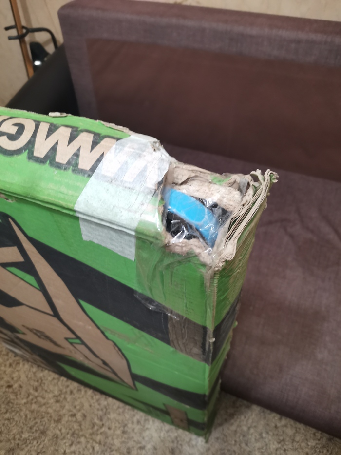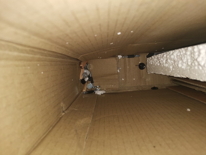 У коробки оторваны куски, (смекнул что может не быть крепежей и болтов, как выяснилось дома - оказался прав.)