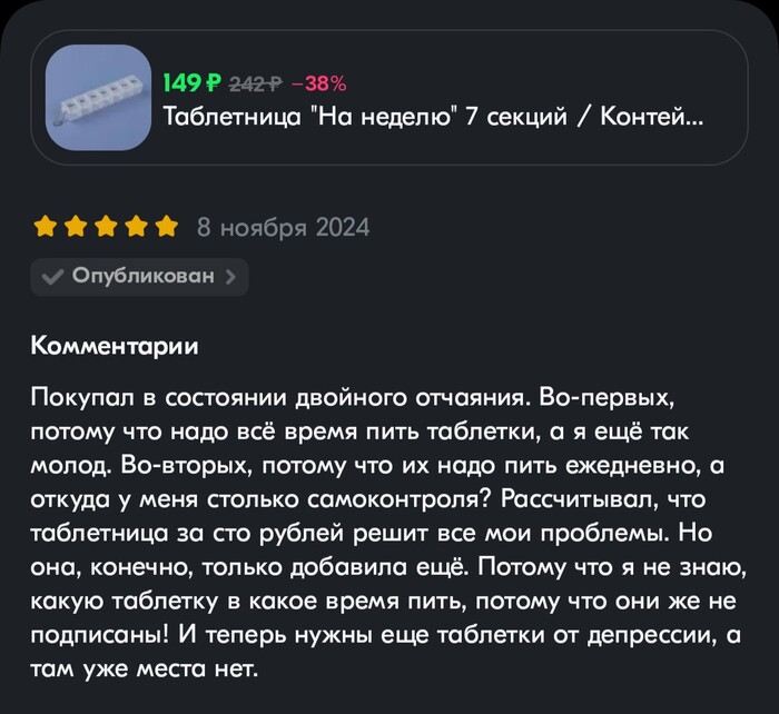 2) Заказ №2 от 11 числа, (10 увы не смог попытаться, а забавно бы вышло). Тут вы сразу можете сказать "Не, ну а чо ты хотел то, распродажа 11.11 все дела, много заказов итд." Океееей, я понимаю как устроен мир маркетплейсов, поскольку на работе так же работаю с ними, НО, заказ по дате должен был приехать 12 числа "После 17:00", в 16:08 12.11 получаю смс "Сорян, доставка перенесена".. спрашивается "А КОГДА Я ПОЕДУ В ЕГИПЕТ!?" «а где логика? А если бы это было не мне а ребенку там (причем видел отзывы от мужичка прям с такой ситуацией), или может другой срочный товар» но не суть, мое мнение об этом чуть позже.