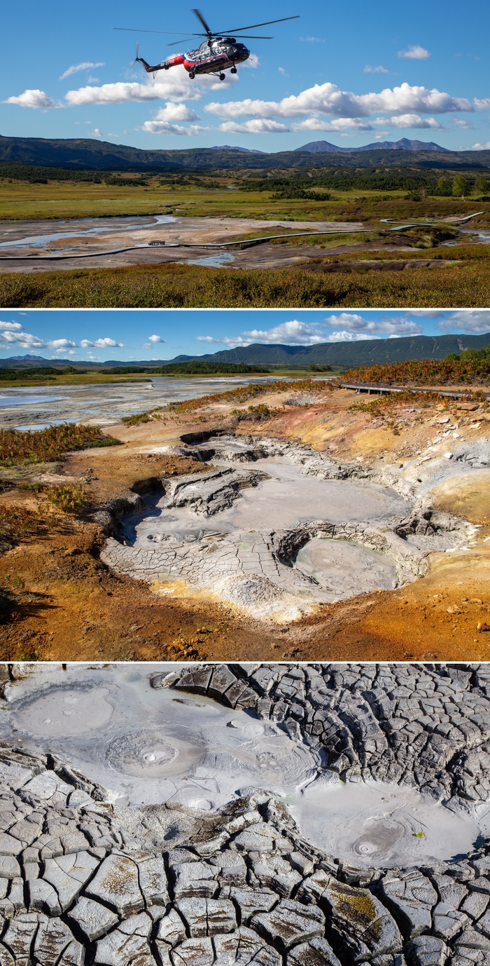К тому же вместе с Долиной гейзеров вы посещаете еще и кальду Узон – не менее интересное место, которое находится рядом с Долиной на территории Кроноцкого заповедника. Вулкан Узон после сильнейших извержений разрушился и стал кальдерой. Теперь здесь зона проявления современного вулканизма и место выхода самой молодой на планете нефти. Туристам же интересны грязевые котлы, кипящие озера и места выхода газа. Пейзажи вокруг тоже колоритны. А если повезет, то встретите и медведей, следы их везде разбросаны. Поэтому каждую группу постоянно сопровождает один из смотрителей кордона с ружьём.