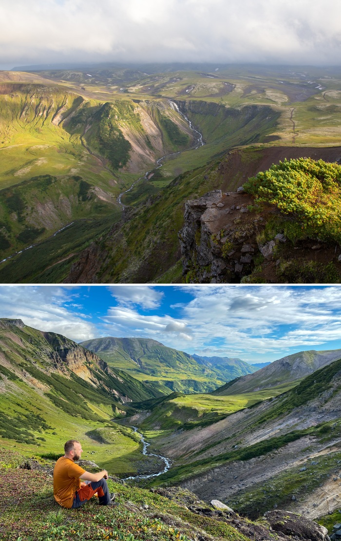 Мы были на Камчатке в сентябре, а это сразу четыре сезона. Поднимаешься на вулкан по свежему снегу. Потом спускаешься по склону вдоль талого льда и горных ручьев. На следующий день обгораешь от жаркого солнца. А затем видишь первые разноцветные деревья и собираешь в тундре грибы с ягодами.