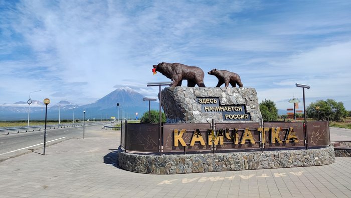 «Россия начинается здесь» (53.188271, 158.425356) – самый популярный монумент с медведями, который можно посетить прямо по дороге из аэропорта. Находится на трассе, только таксиста заранее попросите остановиться.