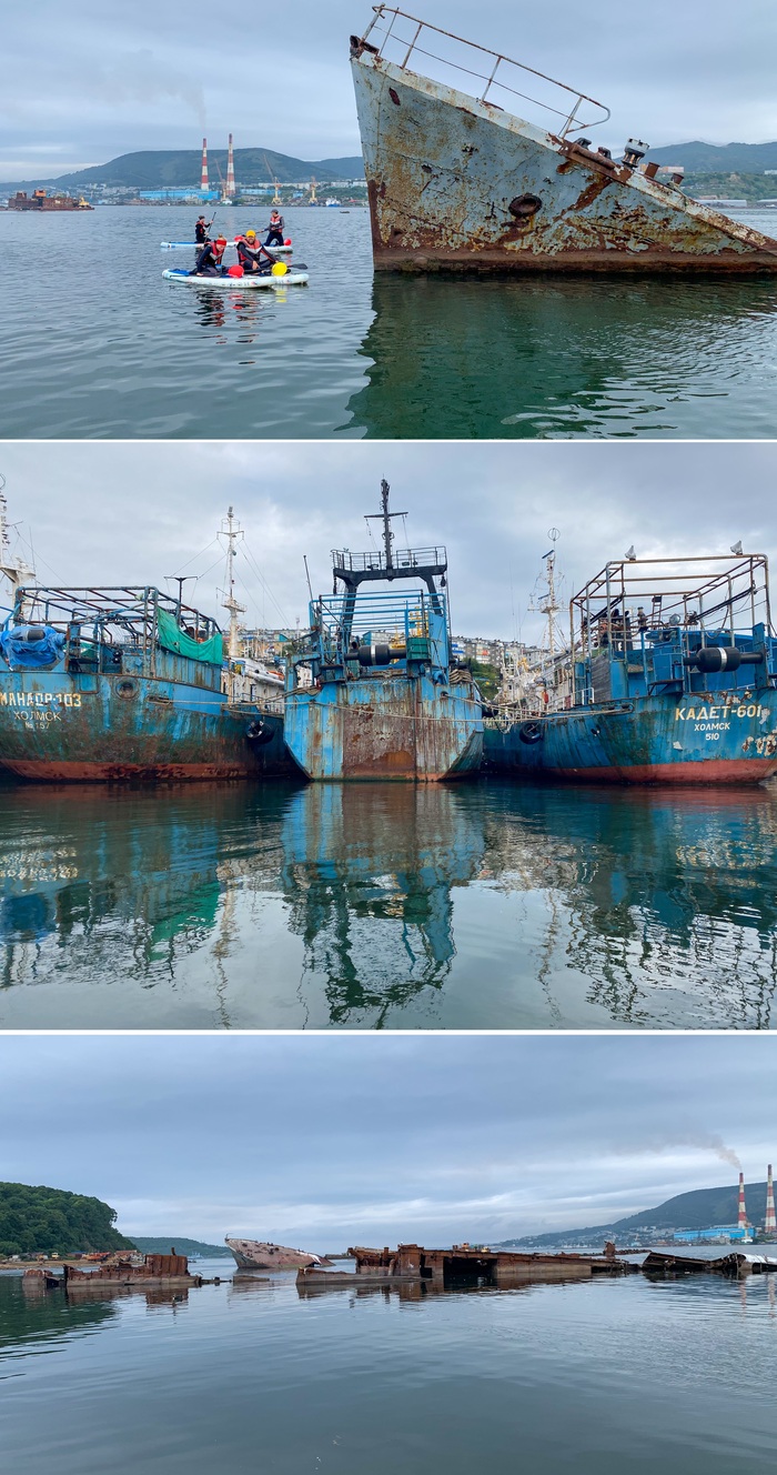 SUP прогулка – с веслом на досках рядом с заброшенными кораблями в Авачинской бухте.