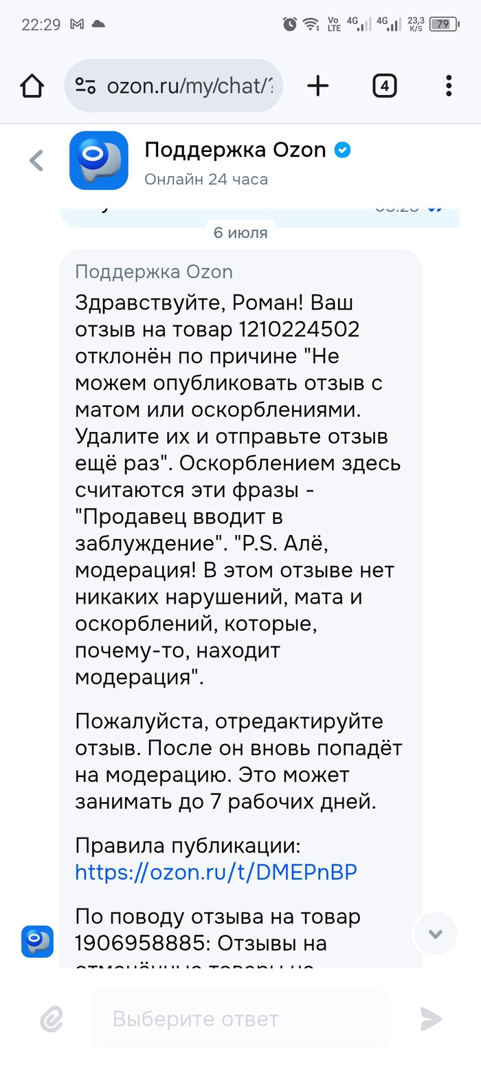 Текущая практика говорит о том, что в договоре Озона не прописаны четкие критерии того, что считается нарушением закона, а сами положения закона модераторы Озона игнорируют.