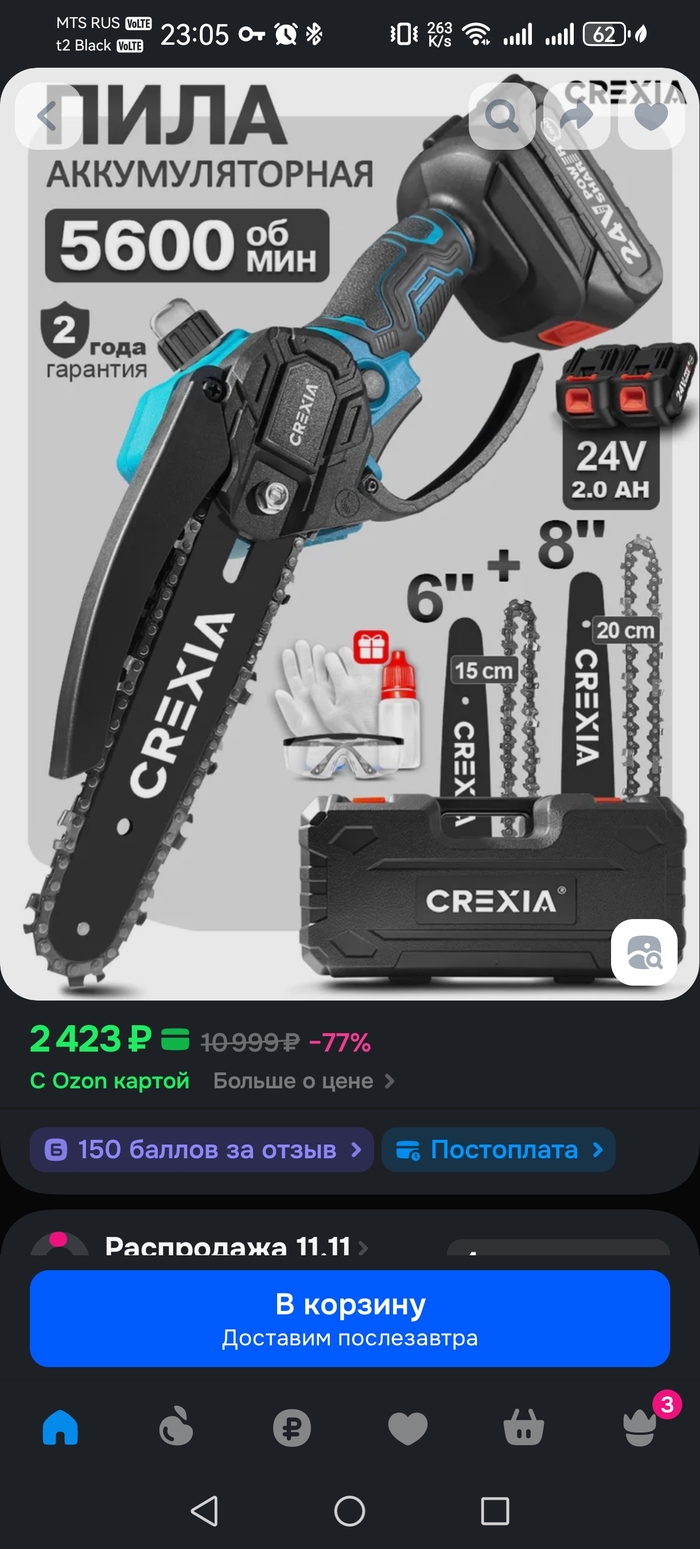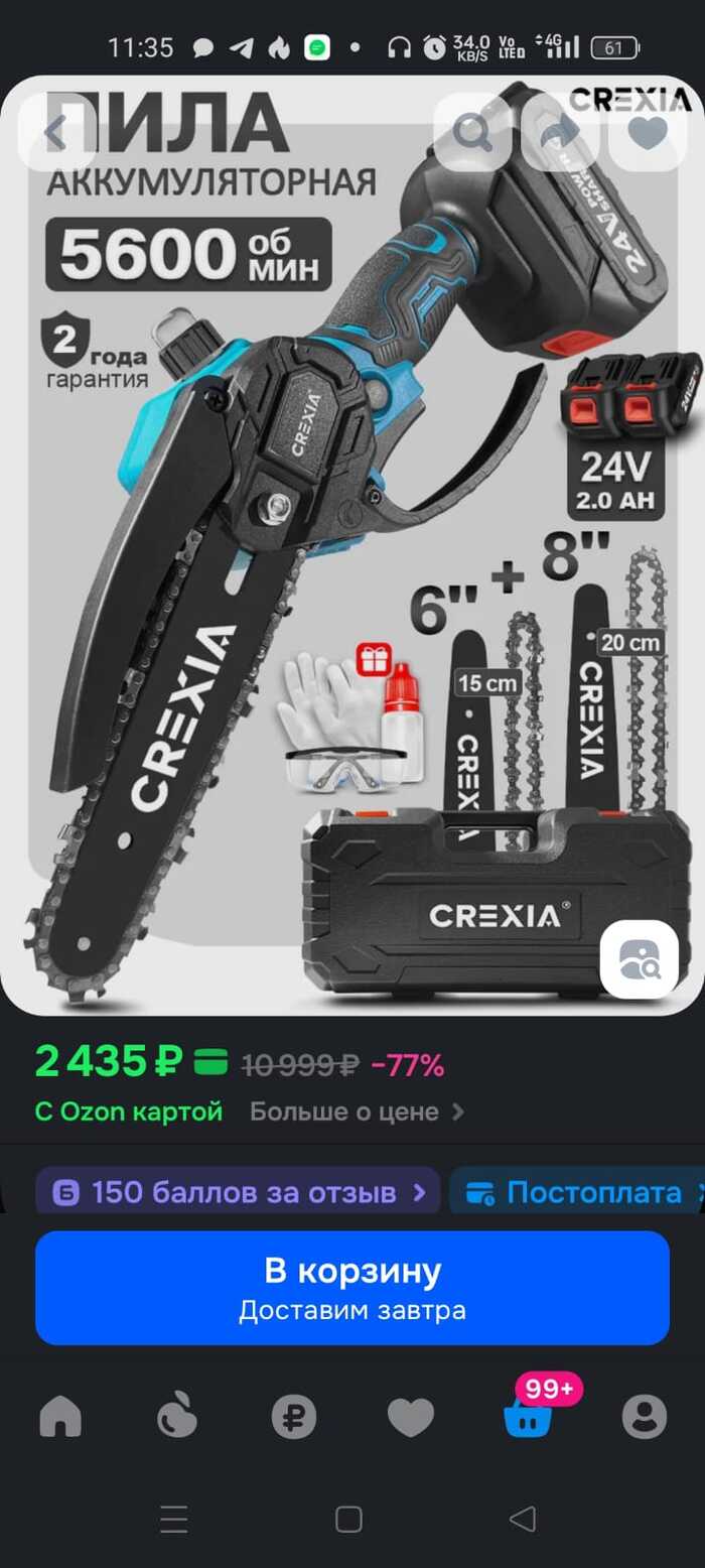Попросила девушка тут пилу вчера прикупить на Озоне. Она любит сады-огороды. Решил поискать и нашел неплохой вариант. У меня на Озоне премиум, дающий какие-то плюшки (плюшку пихать мне товары по овер прайсу)