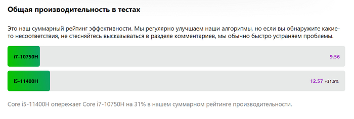 Но возьмём опять же упомянутый i5-11400H и i7-11370H, кажется оба 11-го поколения, но в данном случае Core i5 будет производительнее, чем i7 примерно на 30%