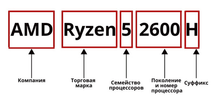 H — производительная серия для ноутбуков; HX — еще более производительная серия процессоров для ноутбуков; HS — особая серия процессоров AMD, производительность которой равна серии H, но теплопакет снижен; U — энергоэффективная серия для ноутбуков со сниженным теплопакетом.