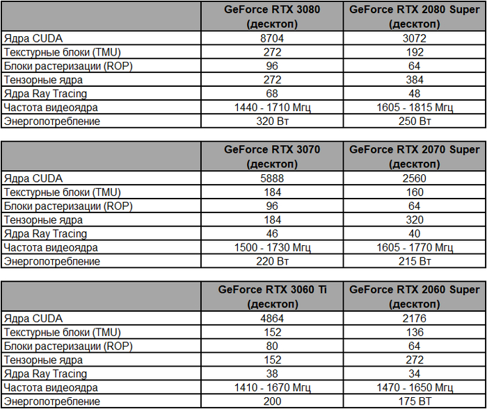 RTX 2080 и RTX 2080 Super Очень горячие видеокарты в своём поколении, лучше не рассматривать к покупке, да и та же 2080 Super хуже, чем RTX 3060 Ti.