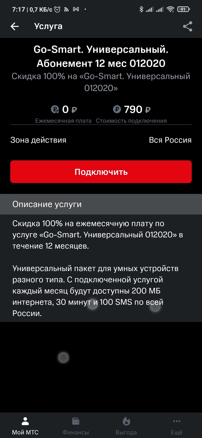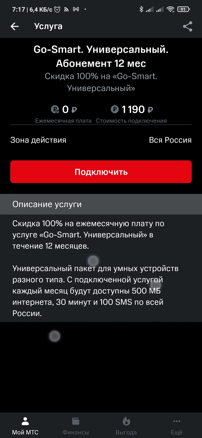 А началось все с того, что на детских часах закончились деньги. Залез в приложение МТС, а тут как раз услуга для тарифа. Можно продлить мой тариф, оплатив сразу за год 790р. По минутам и смс тоже самое, а МБ меньше ( ну и ладно хватит).