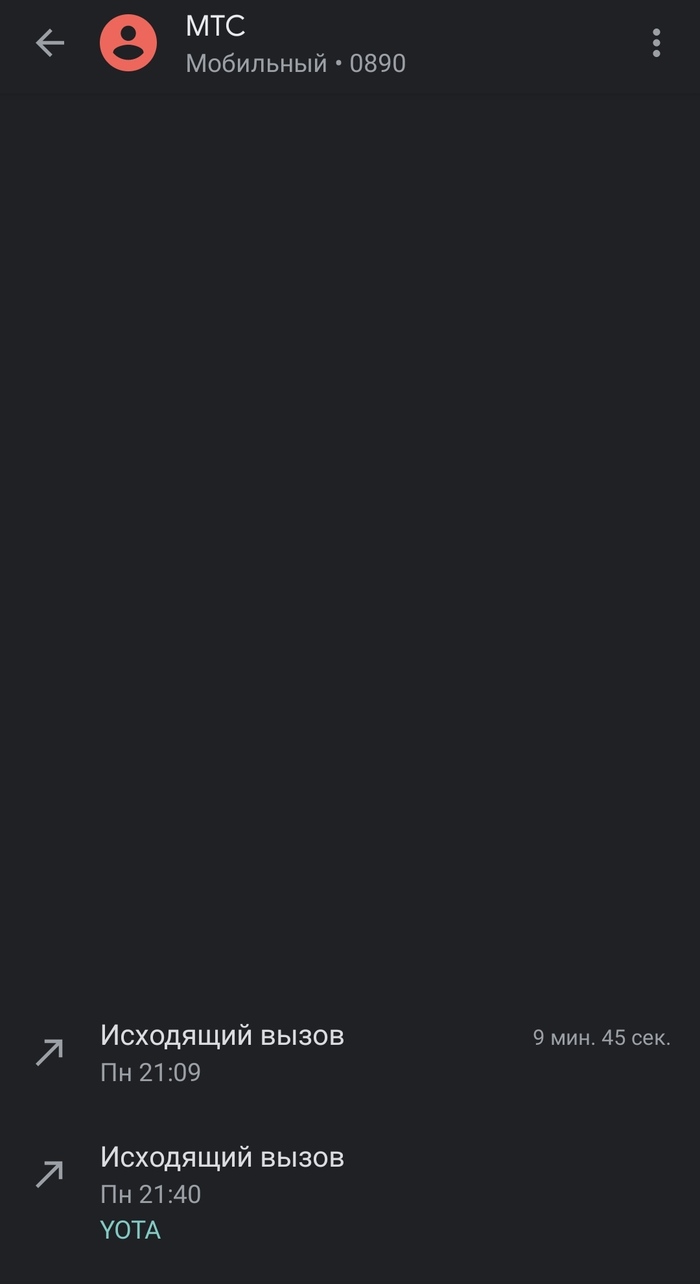 О - я проверила. Указано, что вы в 21:15 сменили тариф. Я - не менял, я с вами разговаривал. (Скрин ниже - это время первого звонка.) О - секундочку, я уточню.