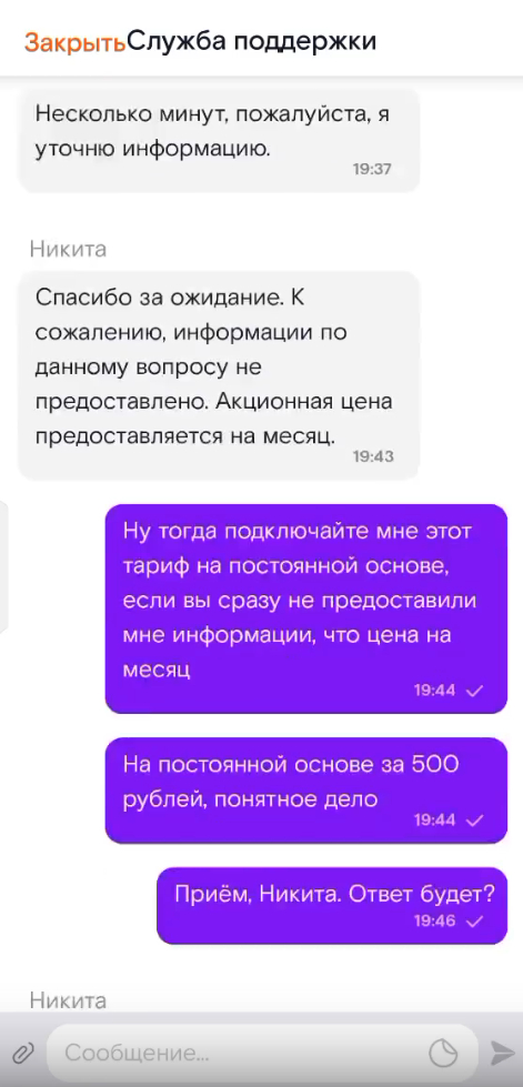 На месяц, блять. Они мне сделали цену в 500 рублей на первый месяц. Видимо, так я их достоебал, что решили они, всё же, кинуть подачку с барского плеча. Дальше снова чат поддержки, уже просто из азарта и интересу, чего ж они такого придумают на этот раз.