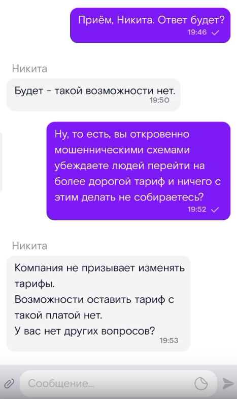 На что получаю ответ, что всё на мази, тариф они сами поменяли, меня особо не спрашивая.