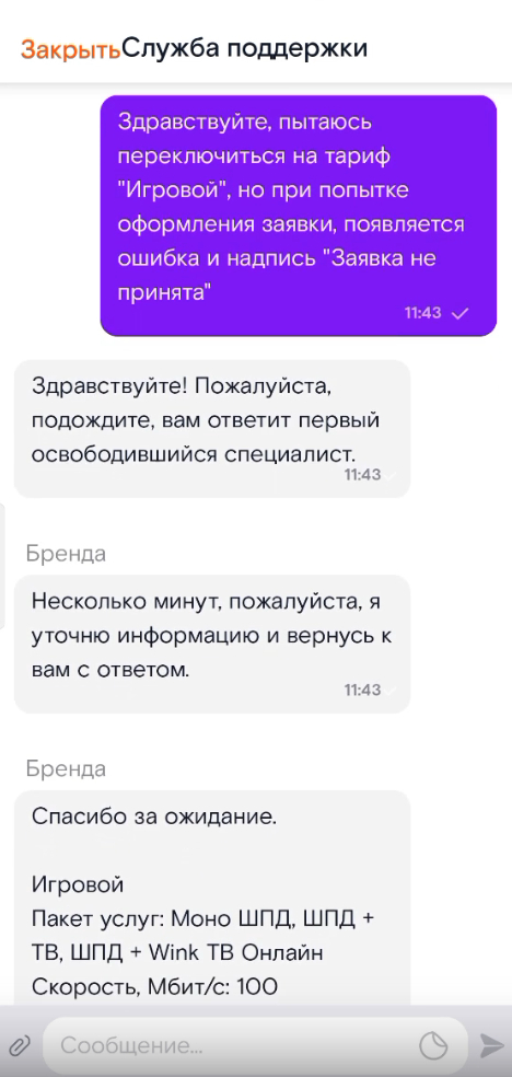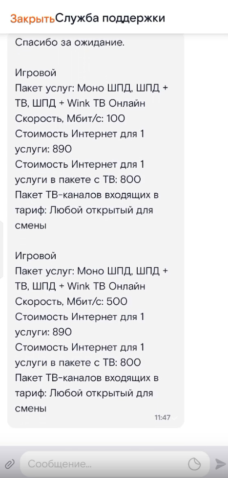 Тут они мне написали какую-то дичь про тариф до 200 Мб со скоростью 500 Мбит/с (возможно, конечно, дело не в лыжах, но это не совпадает ни с тем тарифом, который у меня был, ни с тем, на который я хотел перейти)