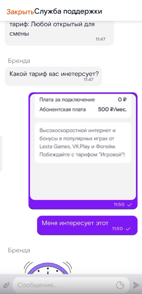 Сотрудник техподдержки рассказывает клиенту о возможности перехода на рекламируемый тариф