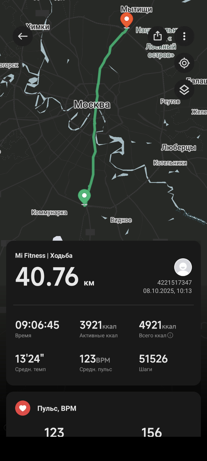 Вчера, наконец-то, осуществил свою давнюю задумку: прошёл Москву насквозь. Идею увидел пару лет назад на Пикабу. Стартовал от МКАДа, в районе метро Аннино, и финишировал на платформе Перловская, оттуда ближе к дому уезжать. Изначально пройду полностью или нет - не знал, но сил придавало то, что я никому не обязан и в любой момент могу "слиться" на метро. Первые пару часов было немного не по себе, от осознания что весь день придётся просто идти, но с каждым пройденным километром понимал, что дойду до конца.