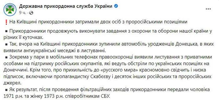 "В Киевской области пограничники задержали двух человек, у которых нашли сообщения в телефоне против украинской армии.