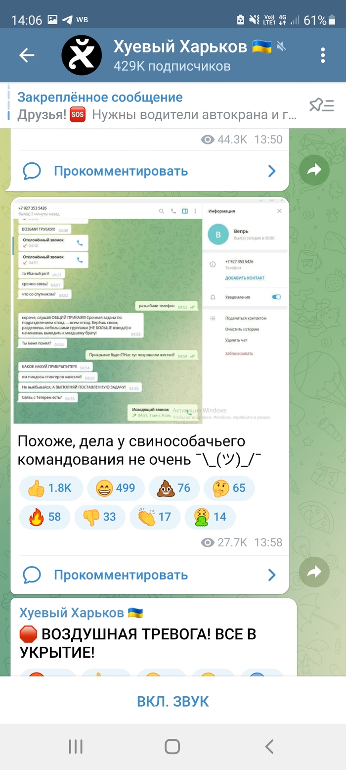 Опустим тот момент, что предполагать общение командования в Телеге — бред собачий, это ведь делается в расчёте на украинского потребителя, но посмотрите в угол скрина с сообщением) "Активация windows". Они даже не попытались эту надпись удалить.