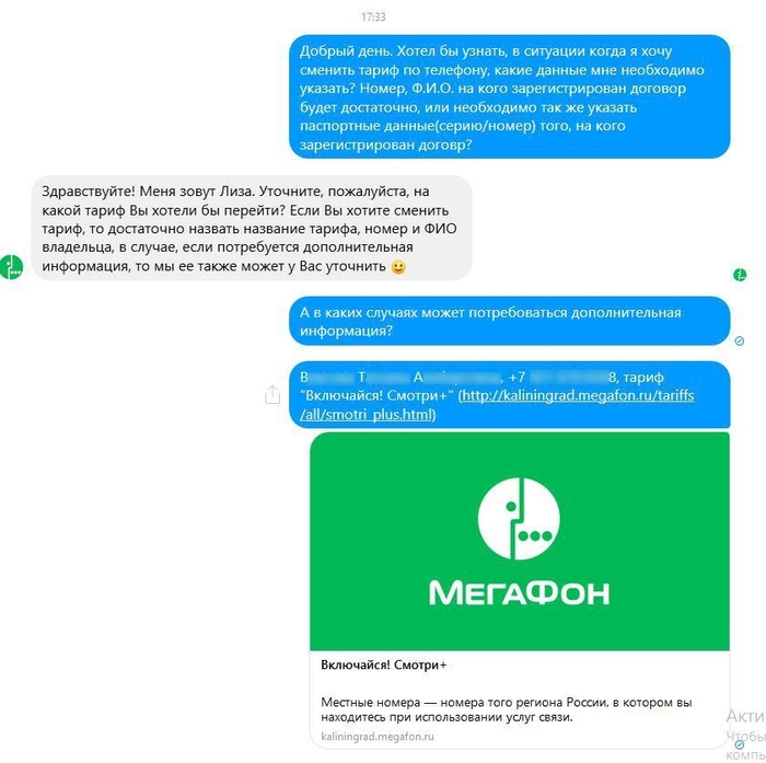 Сразу хочу отметить, что мне понравилось обслуживание в плане вежливости и клиентоориентированности. Если бы меня срезали вопросом про паспортные данные, пожалуй я бы перевёл обе свои симки на мегафон. Надеюсь у сотрудника, который со мной общался проблем из за поста не будет.
