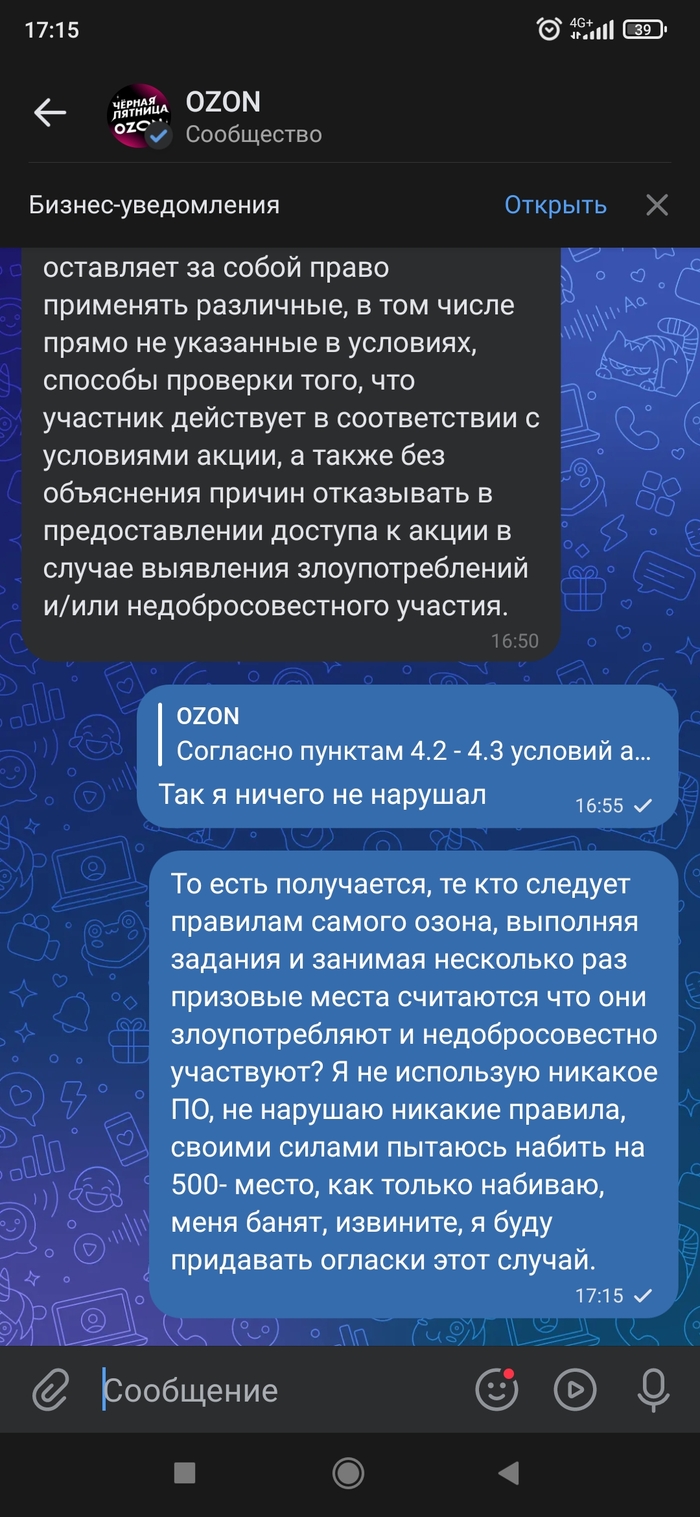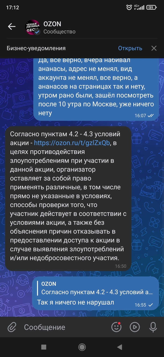 Итоги такие не ведитесь на акции Озона, маркетплейс иногда норм, иногда кусок собачьего дерьма с обдолбанной технической поддержкой, даже с ботом разговаривать было веселее. Как и многие другие пытается развести, на репутацию ему кстати плевать, поэтому пост вряд ли что то решит, просто предупреждение всем читателям, в Роспотребнадзор все равно напишу, пусть проверят, но не уверен что найду какие то нарушения, ведь мелкий шрифт в соглашениях по-любому прикрыл все интимные места синебота)
