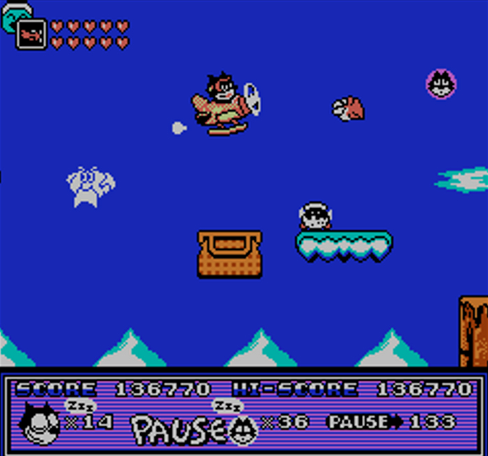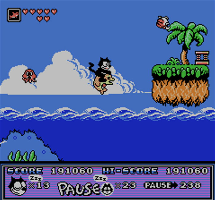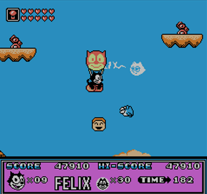 На счёт сложности, когда я в очередной раз решил перепройти Felix The Cat, в голове было стойкое ощущение что игрушка простая, будто бы для детей. Однако, она сложная, но в меру. Если совсем бездумно бежать/лететь/плыть вперед, естественно её не пройдешь. Но вот эти бонусы на каждом шагу, куча жизней на каждом уровне. Создаётся ложное ощущение простоты, и иногда возникающий вызов даже немного сбивает с толку.
