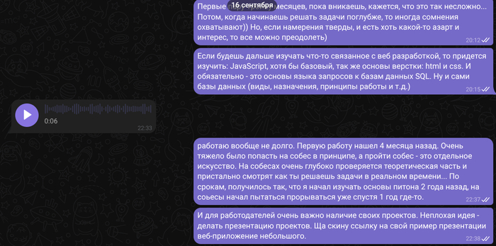 Тут он мне прислал голосовое с вопросом: "Какие еще группы в ТГ я знаю по 'этой теме'."
