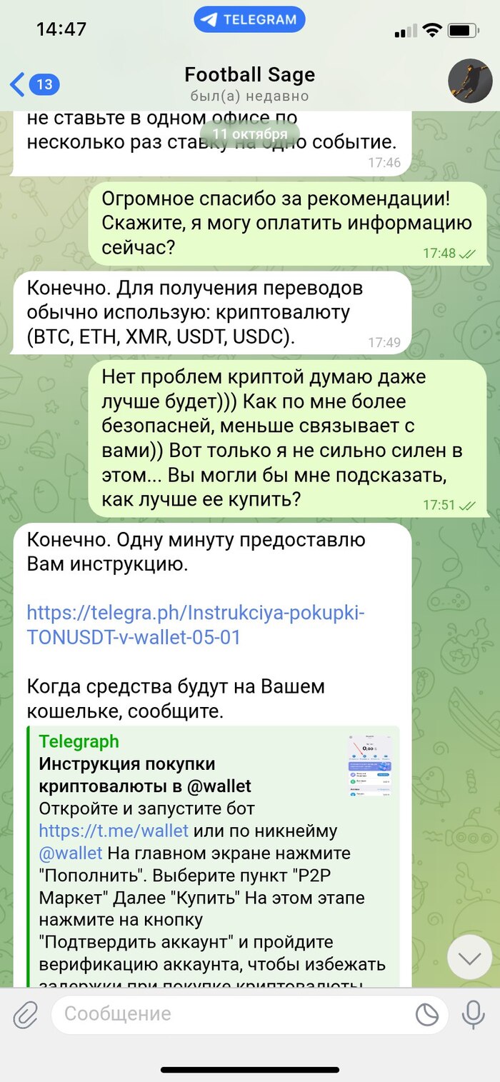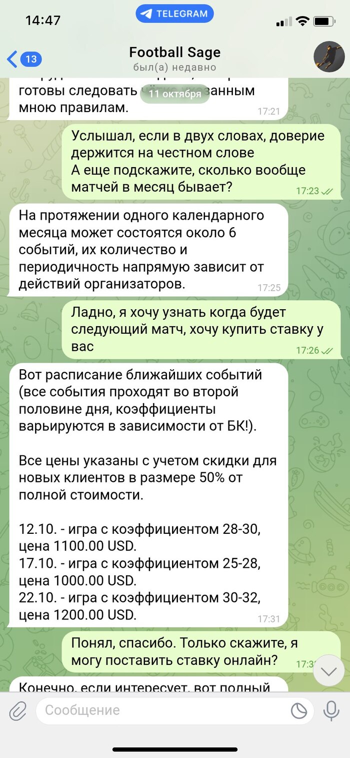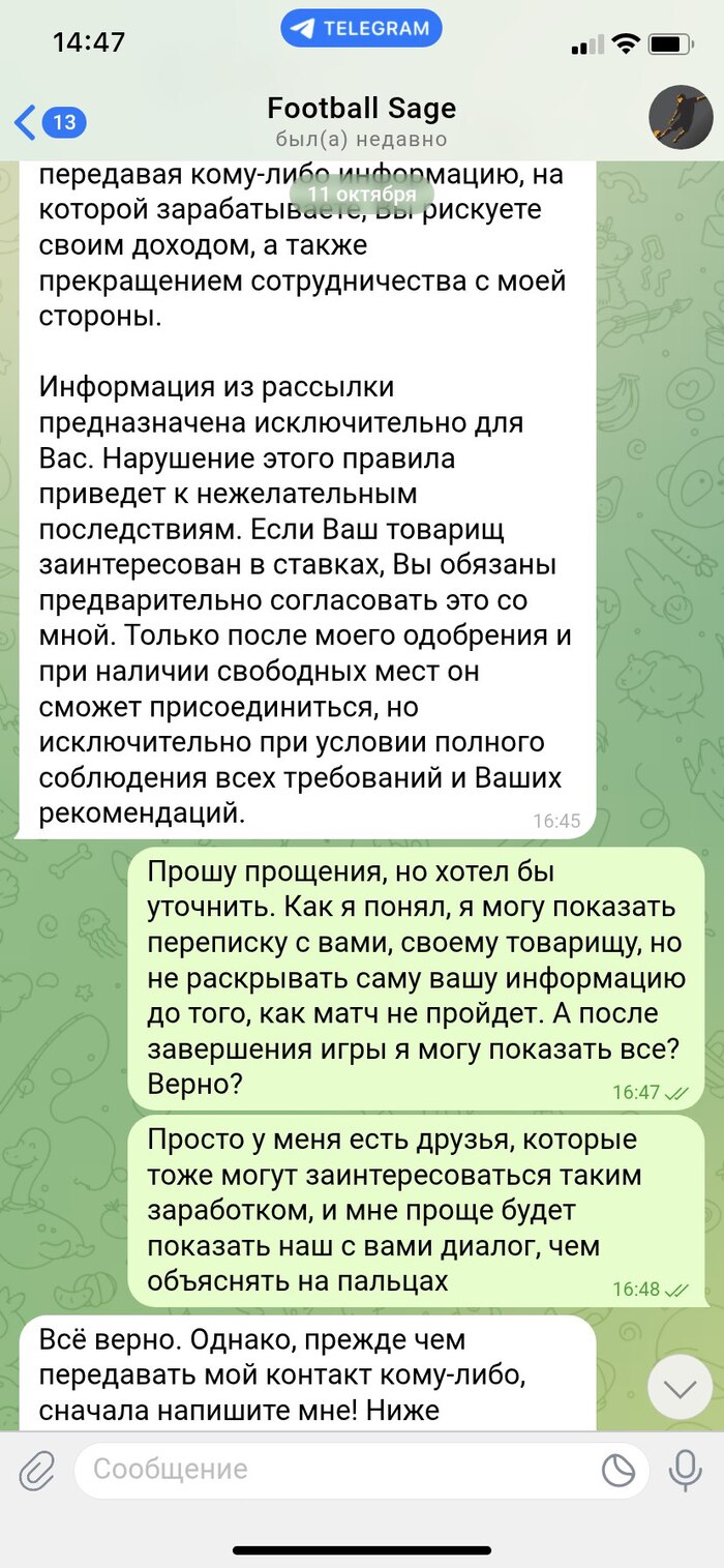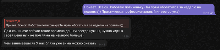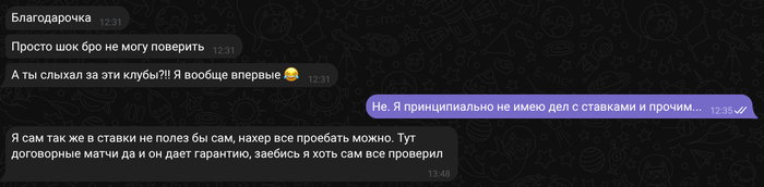 Честно говоря, я был очень сильно заинтересован в том как он будет мне "продавать" все это. Полагаю, что, скорее-всего, расчет на то, что я сам спрошу... Но я не спрашивал. И он вяло писал про очередные выигрыши и крипту и еще там что-то...