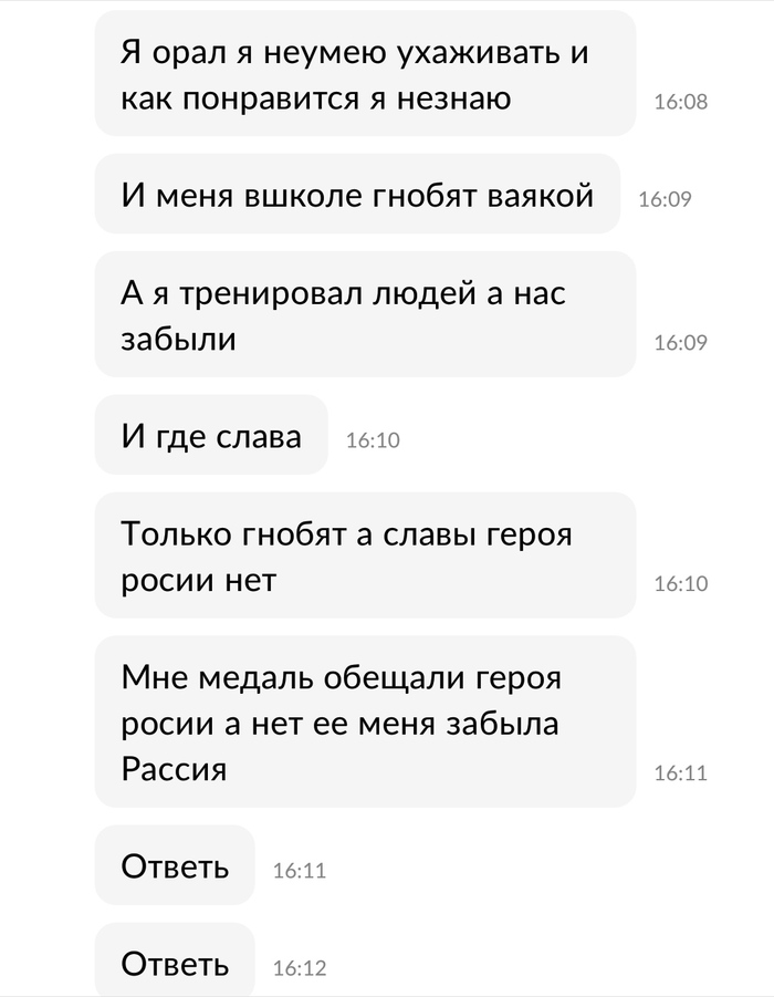 Судя по Аве писавшего, пишет ребенок в возрасте 10-14 лет. Профиль закрыт.