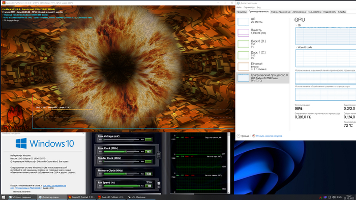 Разгонный потенциалЭто уже третья низкопрофильная AMD RX 550, которая попадает ко мне в руки. Так что я могу с уверенностью утверждать, что компания AMD уже давно оптимизировала литографию кристаллов GPU и почти все представленные на рынке модели AMD RX 550 обладают одинаковыми показателями разгона. Используя Afterburner 4.6.3 память удалось разогнать на 24%, а частоту чипа на 20%.
