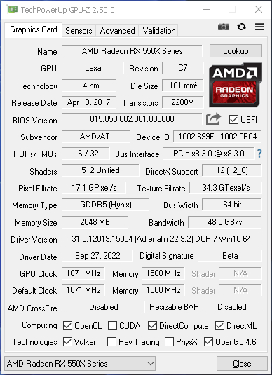 * Видеокарта: AMD Radeon RX 550 2 ГБ GDDR5