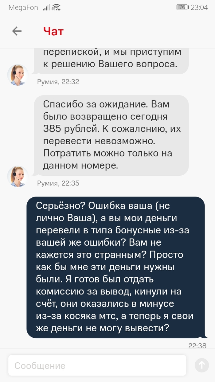 Я очень сильно ругался с Поддержкой в чате и они завели обращение. На следующий день его закрыли вот с такой формулировкой