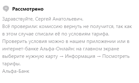 Как Альфа-Банк списал комиссии за просто так