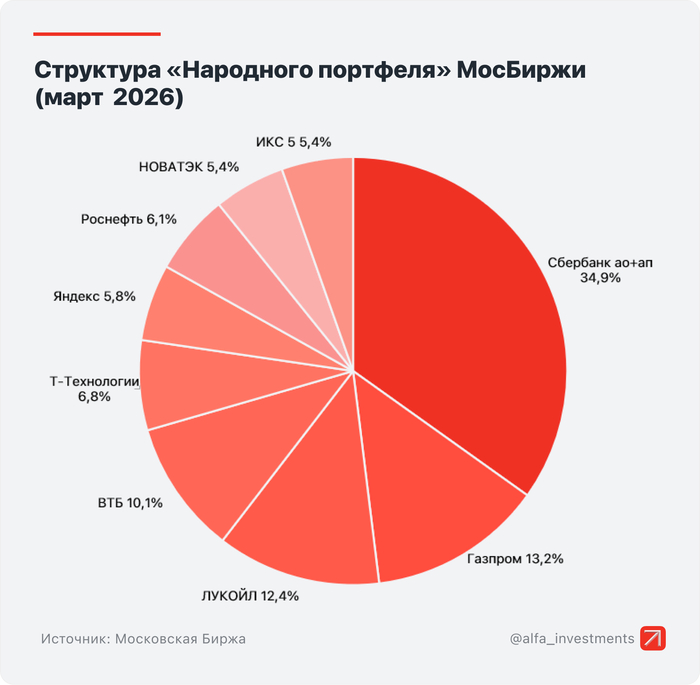 💼 Народный портфель: акции Сбербанка (ао 28,1% и ап 6,8%), Газпрома (13,2%), Лукойла (12,4%), ВТБ (10,1%), Т (6,8%), Роснефти (6,1%), Яндекса (5,8%), X5 (5,4%), Новатэк (5,4%). Роснефть и Новатэк ворвались в топ, а Лукойл нарастил долю на фоне Ирана. Норникель и Полюс выпали из топа.