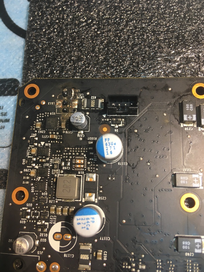 Начну ремонт с RX570 - при диагностике отсутствует питание ГПУ и небольшое вздутие на шим-контроллере.