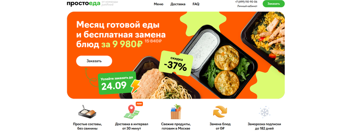 🥗 ProstoEDA — делает ставку на доступность: еда на месяц дешевле конкурентов, можно замораживать подписку и менять блюда бесплатно.