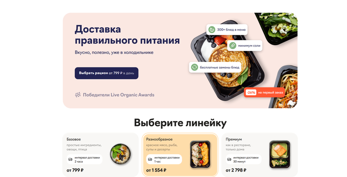 Рационы делятся на три линии: Life для повседневных целей, Health для тех, кому важно заботиться о здоровье, и Personal — полностью индивидуальный набор с поддержкой диетолога. Доставка организуется ежедневно в удобное время, а заказы легко контролировать через мобильное приложение.