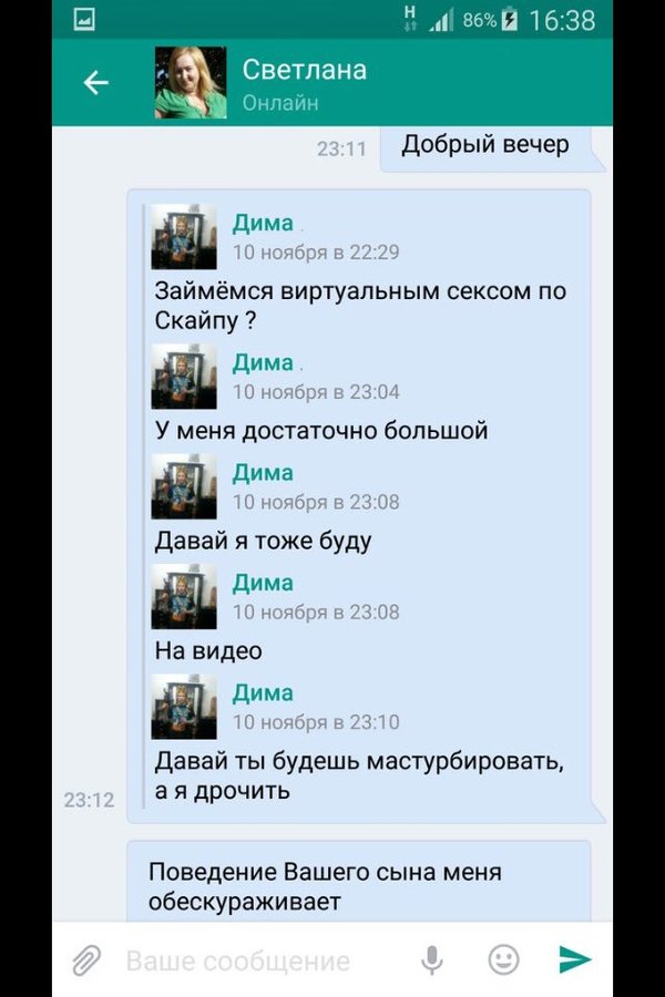 Тут я поняла, что пора действовать, взяла его за шкирятник и потащила на вокзал. Заставила отбить мамо телеграмму, чтобы она прислала ему денег на дорогу. А потом, когда деньги пришли, заставила купить билет, чтобы он катился к такой-то матери. Старуха наша, видя, что я от него шарахаюсь, чуть ли не обнимать его начала, как родную сыночку, и подначивать меня, мол, сука такая, заманила бедного мальчика в ебеня, а щас ещё и не даёть, вот проститутка! Любое моё объяснение, что "не виноватая я, он сам пришёл" игнорировалось с каждой выпитой бутылкой водки, и три ужасных дня старуха усердно бухала с этим "нищасным мальчиком".