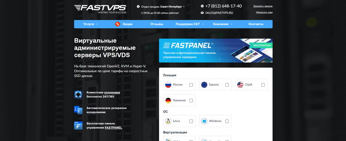 🚀 FastVPS — стабильные VPS с SSD и NVMe в РФ, ЕС и США, удобной FASTPANEL и отзывчивой поддержкой. Подходит для любых целей
