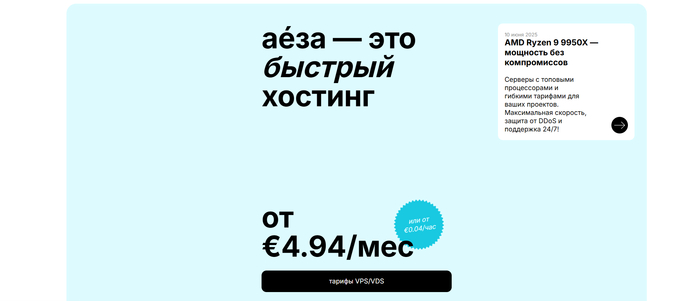 Современный провайдер с акцентом на NVMe и почасовую оплату — аренда vps возможна от €0.04/час или от €4.94/мес; плотная сеть дата-центров в Европе и Москве, мощные процессоры для приложений и телеграм-ботов, удобный личный кабинет и встроенная anti-DDoS защита.
