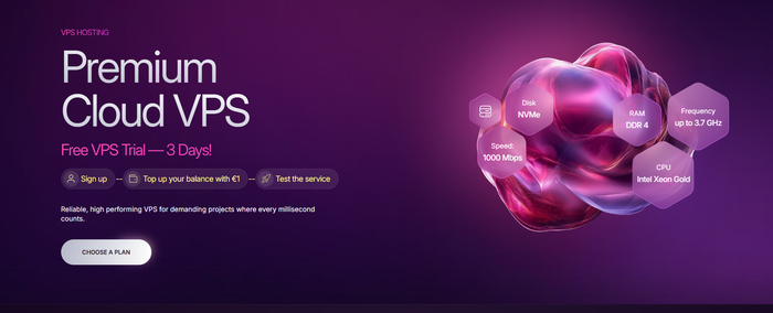 Провайдер из Европы с тарифами на VPS/VDS от €2.80/месяц, использует NVMe-диски, линейку Intel Xeon Gold и AMD EPYC, мощный канал, есть выбор локаций, подходит для сайтов, приложений, ботов и тестовых окружений с разной нагрузкой.