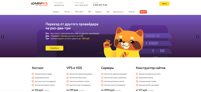 Быстрый перенос проектов без простоя. Часто встречаются положительные замечания о ценах на VPS. Но были жалобы на ограниченное количество запросов к серверу при аренде хостинга, из за чего сайты ложились пачками.