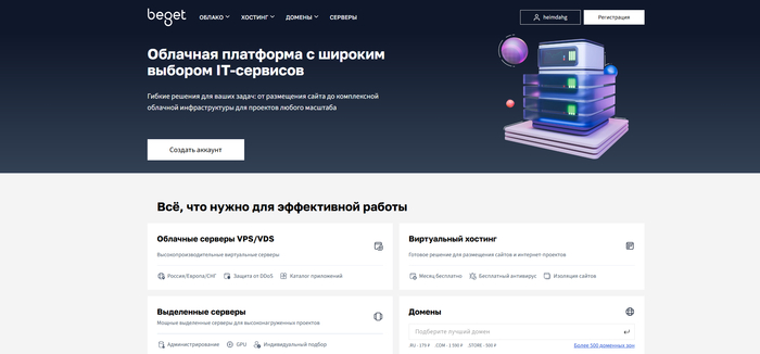 Beget — один из крупнейших хостинг-провайдеров в России, предлагающий аренду VPS серверов с выделенными ресурсами. Инфраструктура построена на собственных дата-центрах в Санкт-Петербурге и Европе, что обеспечивает высокую скорость и надежность.
