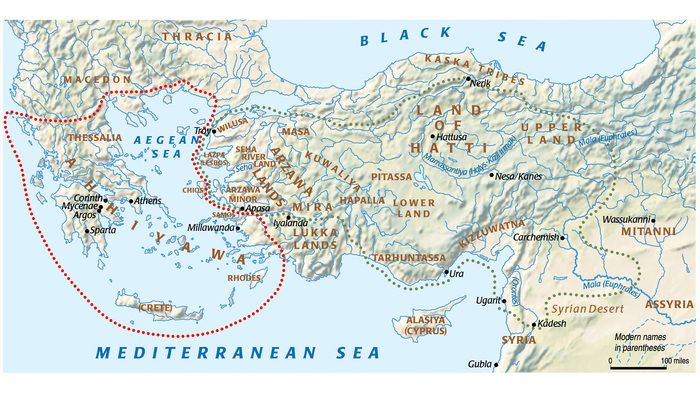 Теперь перейдём к следующему действующему лицу нашего эпоса. Перед нами Арцава, царство Западной Анатолии XIII века до н. э. – область между Центральной Анатолией и Эгейским морем. Здесь пришлые лувийцы, родичи хеттов, смешались с исконными анатолийцами, создав пёстрый узор общей культуры. Благословлённая благодатным климатом, Арцава процветала. Её амбары ломились от зерна, а корабли увозили в дальние земли металлы из горных недр. Цари правили областями под названием Мира, Страна Сеха и легендарная Вилуса из города в районе будущего Эфеса. Экономика Арцавы замыкалась на так называемом «дворце», откуда знать управляла полями, ремёслами и торговлей, распределяя ресурсы и собирая дань.